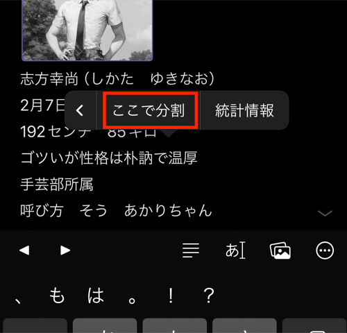 編集画面で、好きなところからファイルを分割できます。